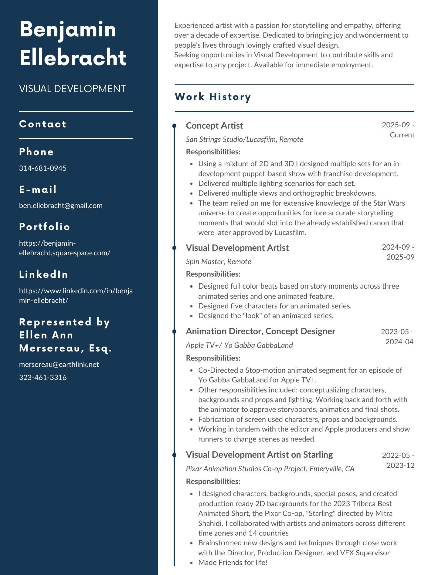 You might know some of my visual development work for companies like DreamWorks, Apple, Spin Master, Big Fish Games, Lucasfilm, or the Pixar co-op film Starling. I’ve also directed animation segments for Yo-Gabba GabbaLand on Apple tv+.